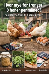 Mange som starter med høner lurer på hvor mye for de faktisk trenger – og hva det koster i praksis. Fôr er den største løpende utgiften i hønsehold, så det er smart å ha kontroll på tallene.